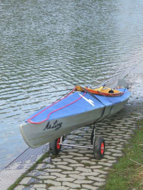 Es ist schon toll, wie schnell sich der Wagen zerlegen und verstauen lässt. Genauso schnell ist er hervorgeholt und aufgebaut. So ist er an jedem Wehr schnell zur Hand um umzutragen.