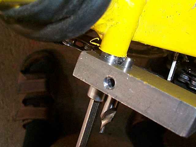 An meinem und Hannos Jive haben wir den Original-Rollenzapfen vom Zox angeschweisst. Der Absatz mit dem 10mm-Durchmesser ist für die neue Rolle zu kurz, er war ja für ein einzelnes Kugellager ausgelegt. Mit dem oben abgebildeten Werkzeug, das ich mir ausgedacht habe, konnte ich den Absatz ausdrehen.