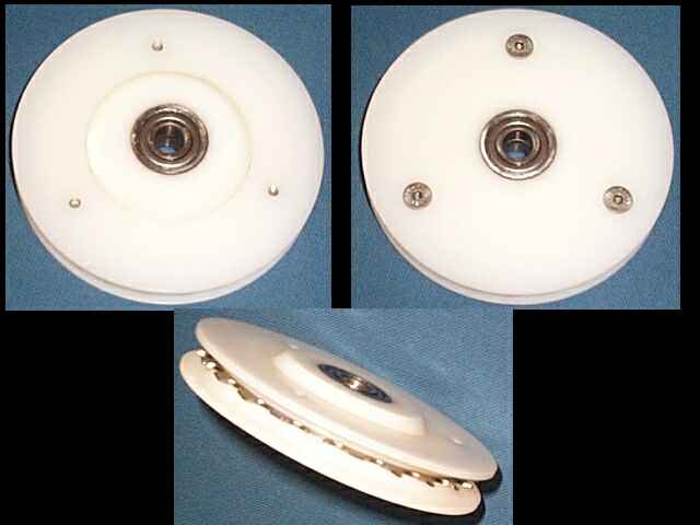 Leider hat der Zox-Rollenzapfen keinen genauen Durchmesser, er beträgt nur ca. 9,7mm. (Das gilt zumindest für das Exemplar an meinem Jive, andere habe ich nicht nachgemessen.) Dadurch hat die Zox-Rolle stark auf dem Zapfen gekippelt. Nachdem ich den Zapfen mit dem Werkzeug verlängert hatte, war der Durchmesser natürlich immer noch der gleiche. Dadurch, dass aber nun zwei Kugellager auf dem Zapfen sitzen, kippelt es viel weniger.