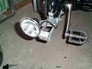 Die Dynamo-Frontlampe ist am Hauptrahmen montiert. So steht sie auch ohne Verkleidung zur Verfügung.