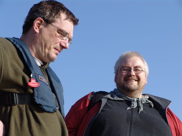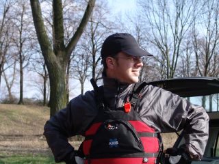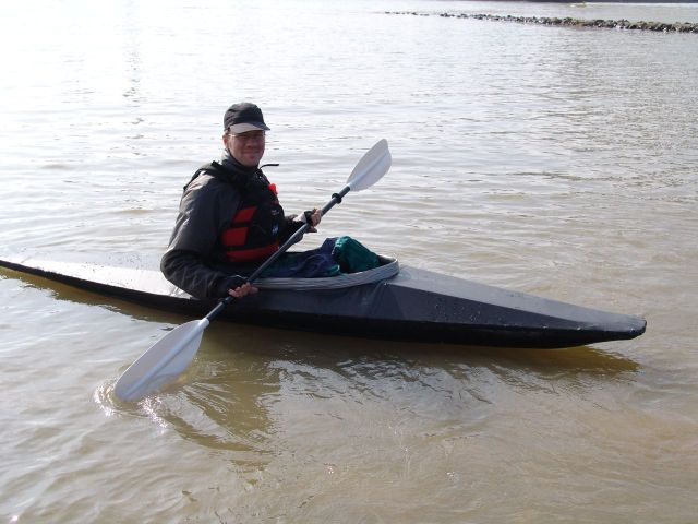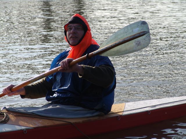 Ich zwinge Rainer, meinen Kajakponcho vorzuführen. Das macht er wirklich elegant!