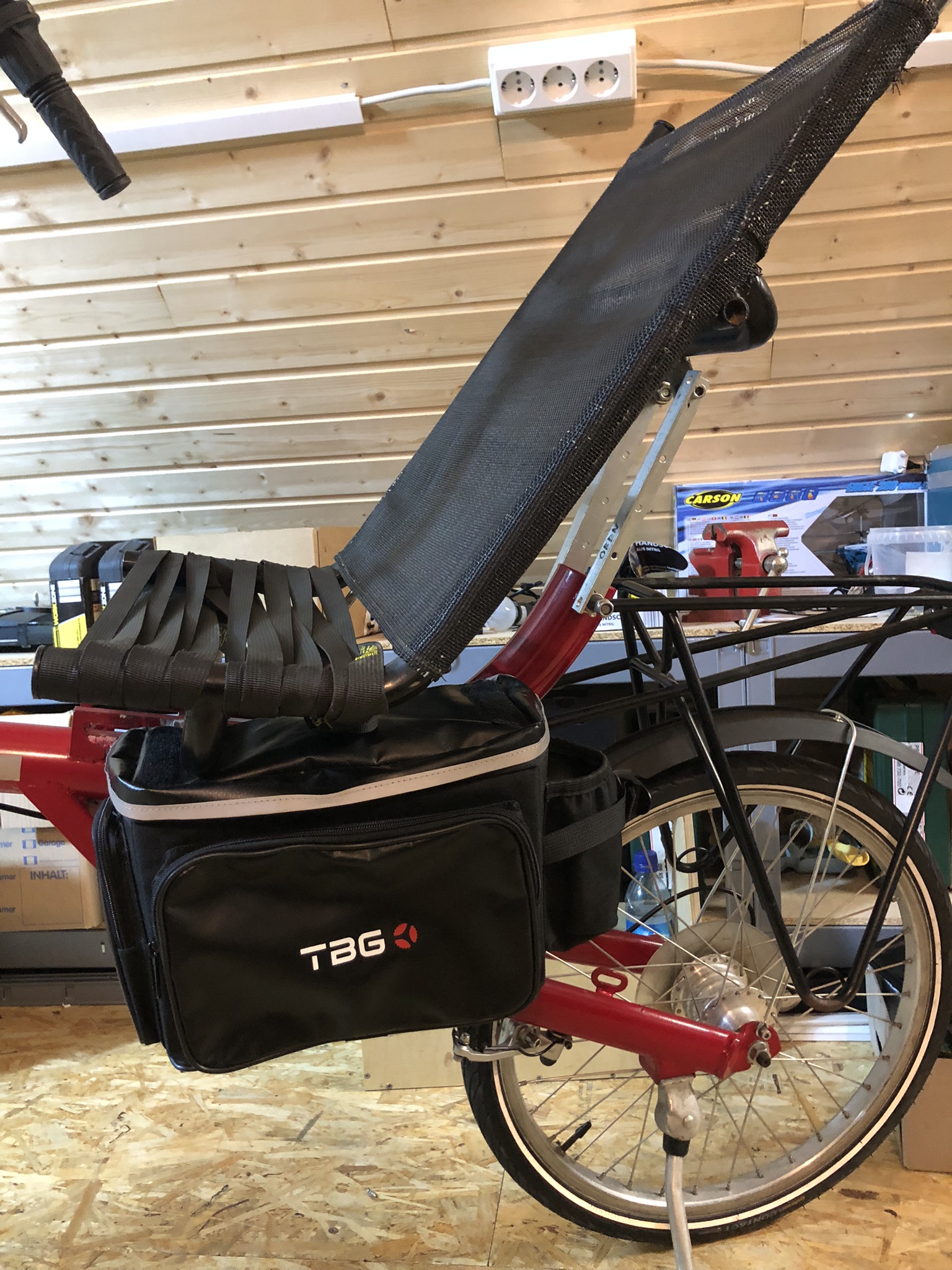 Das Gewicht des Antriebs sitzt nun ideal unter dem Sitz und somit im Schwerpunkt. Es hat gleich alles funktioniert. Kurz nachdem dieses Foto aufgenommen wurde gerieten wir in einen Graupelschauer mit heftigen Böen (siehe Himmel im Fotohintergrund). Es ging mit Vollgas nach Hause. Dem Bafang hat das nichts ausgemacht, der Akku blieb auch trocken. Wir nicht...